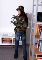 ATK Archives: Tan coed Amy Reid teases in her uniform with her shaved pussy