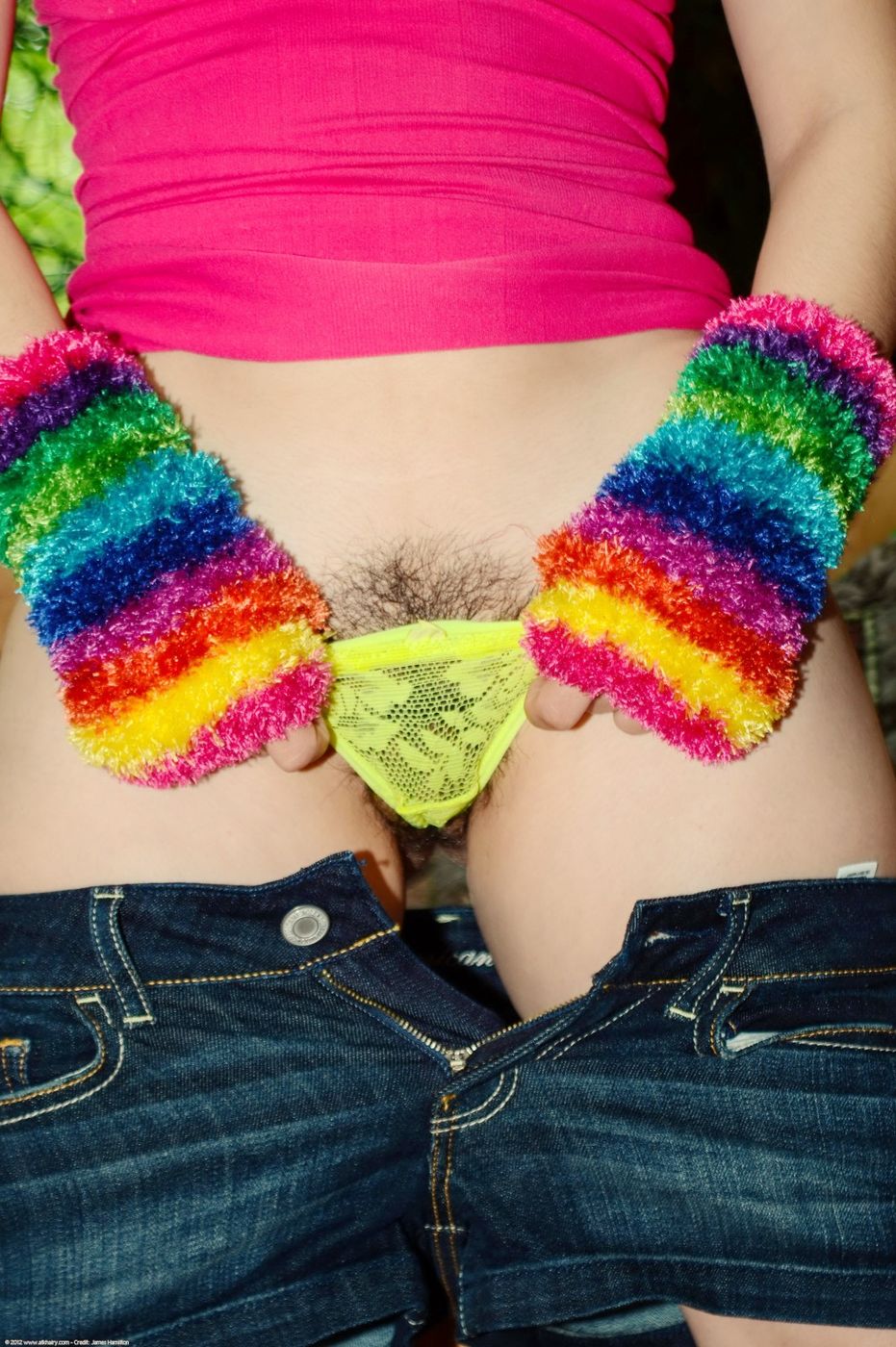 - Description: For those with a panty fetish, Eve Winters delivers as she tries on different panties over her hairy pussy.